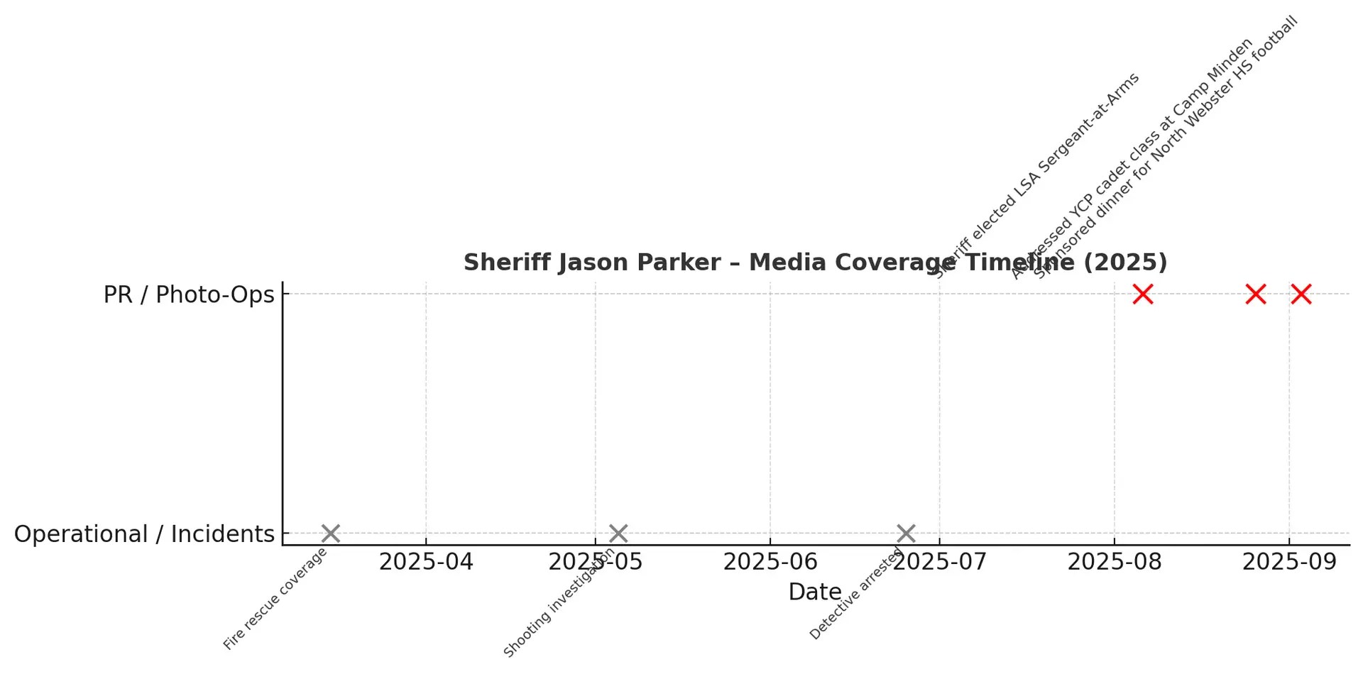 Here’s a clear timeline graphic showing Sheriff Parker’s 2025 media coverage:
